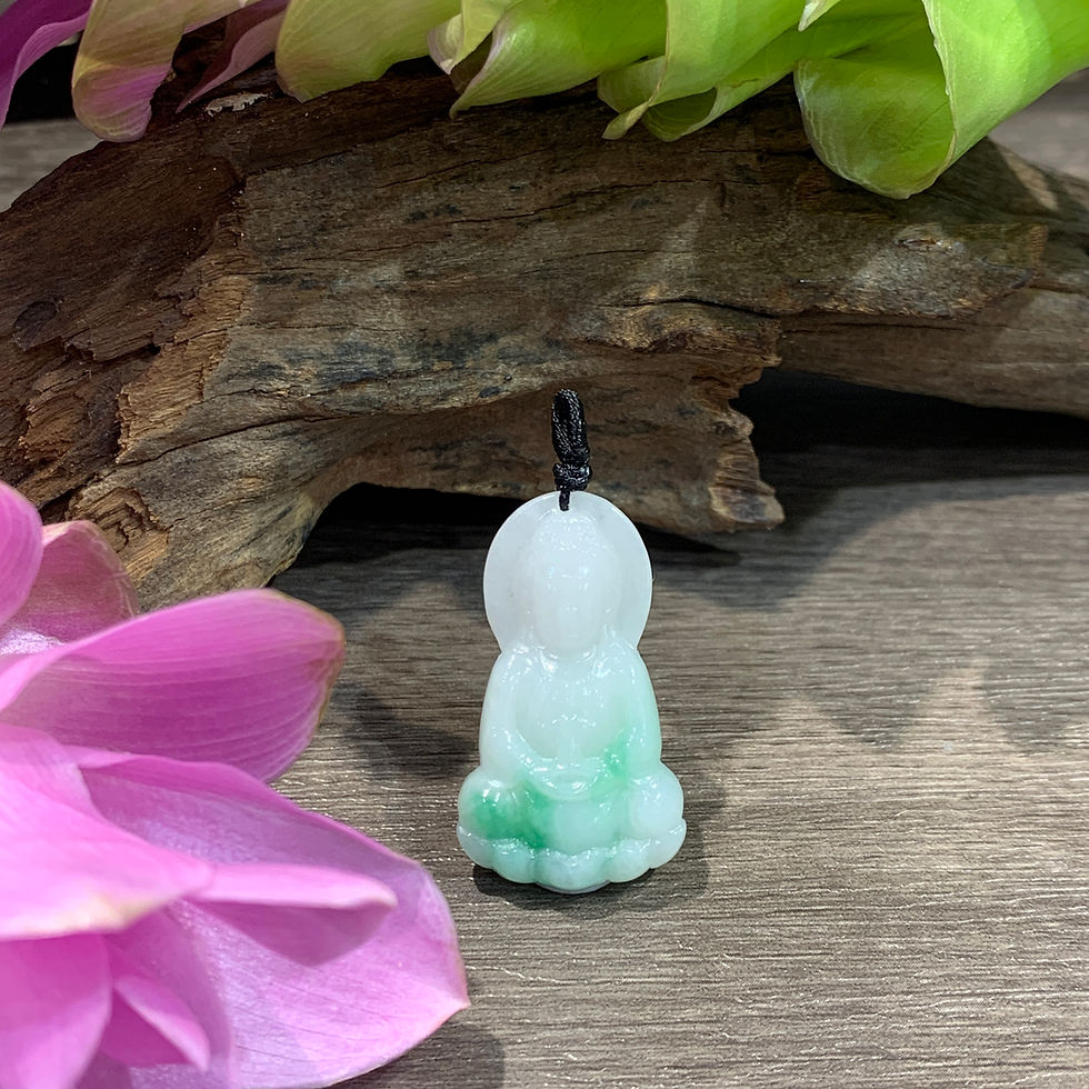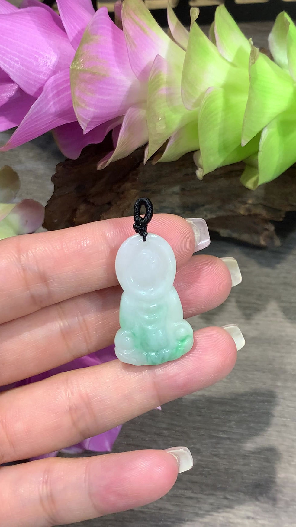 A玉 - 18K白鑽石冰種福祿飄花招財進寶吊墜 [奉送香港翡翠鑑証書: GL 166328]